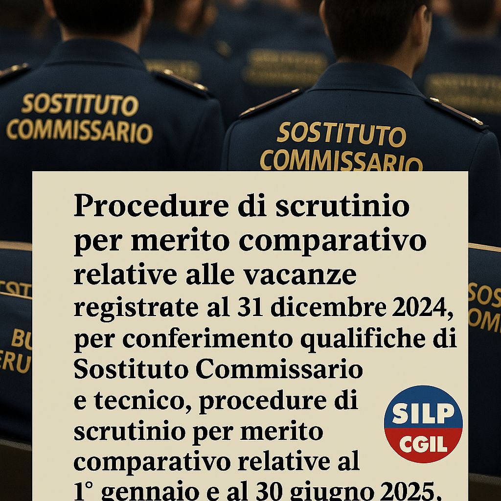 Procedure di scrutinio per merito comparativo relative alle vacanze registrate al 31 dicembre 2024, per conferimento qualifiche di Sostituto Commissario e tecnico, procedure di scrutinio per merito comparativo relative al 1° gennaio e al 30 giugno 2025