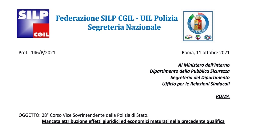 Il rinnovato intervento della Federazione Silp Cgil - Uil Polizia che da tempo porta avanti questa battaglia.