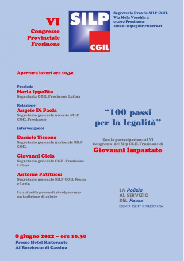 Su proposta del SILP CGIL di Frosinone, e con l'organizzazione a cura del Comune di Cassino, verrà reso un omaggio al Sost. Comm. Roberto MANCINI. L'appuntamento è per il 30.09.22 alle ore 17 e in q...