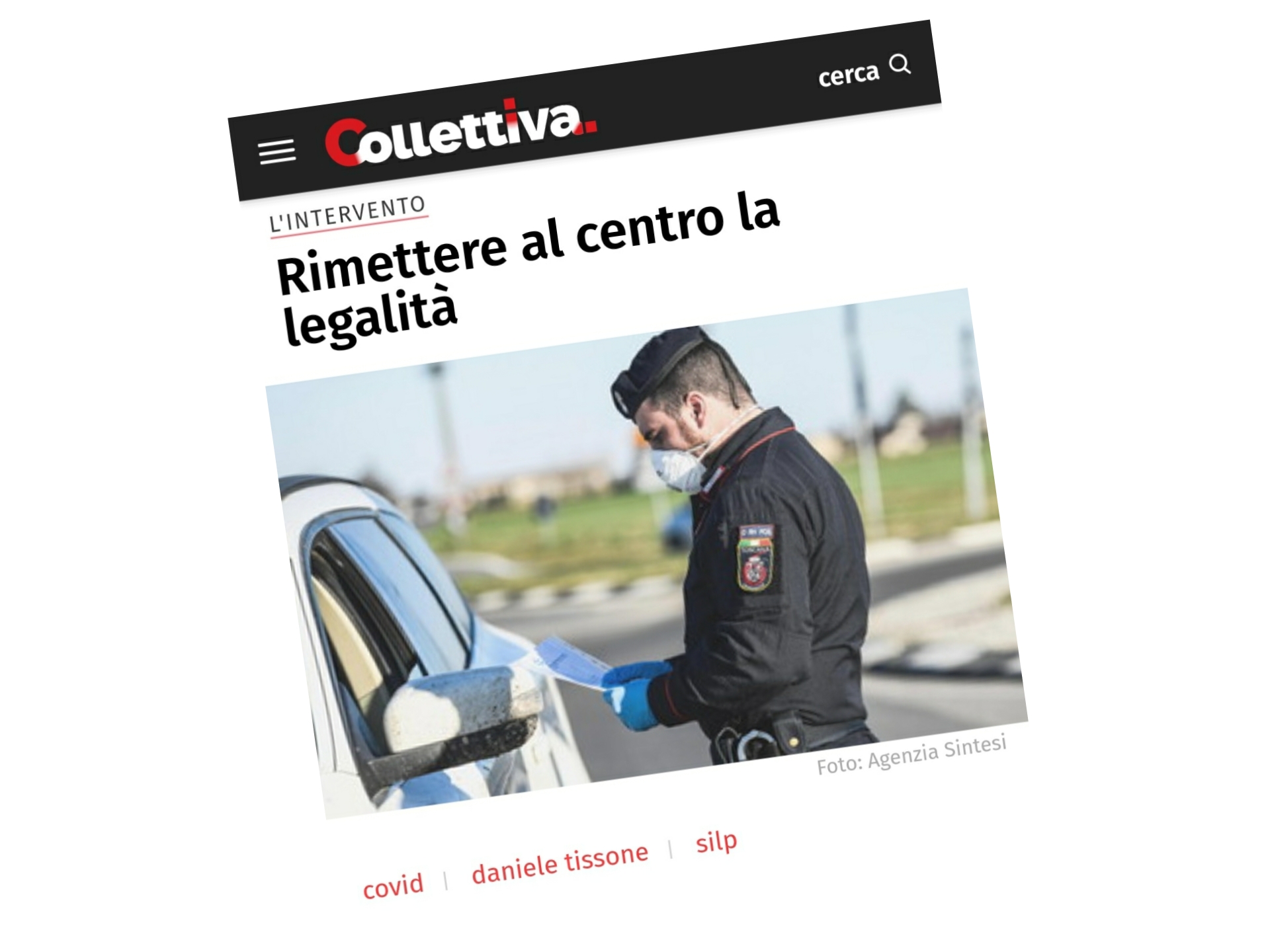 Rimettere al centro la LEGALITÀ (il Silp Cgil su COLLETTIVA)